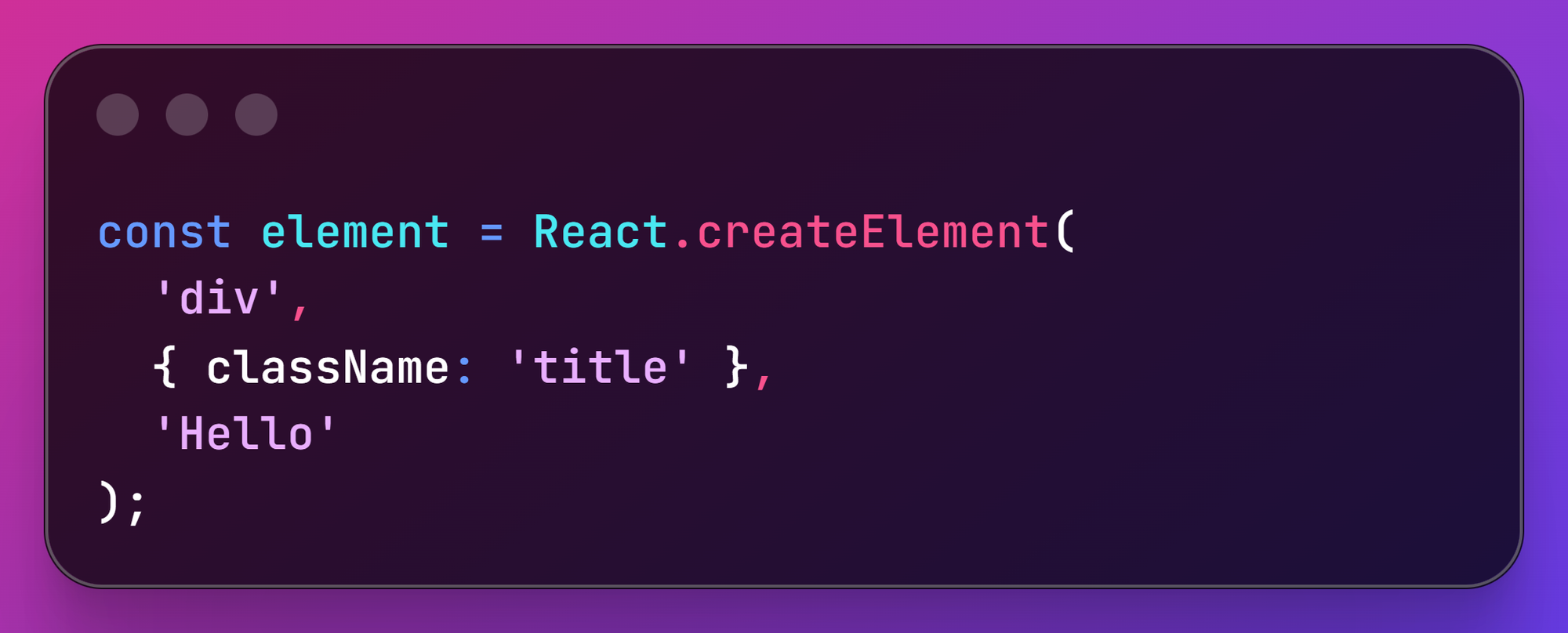 **React.createElement**là một trong các API cốt lõi nhất của framework React, được sử dụng để tạo các phần tử DOM ảo (Virtual DOM). Khi sử dụng JSX, chúng ta thường không gọi nó một cách tường minh, nhưng mỗi biểu thức JSX cuối cùng sẽ được biên dịch thành lệnh gọi React.createElement