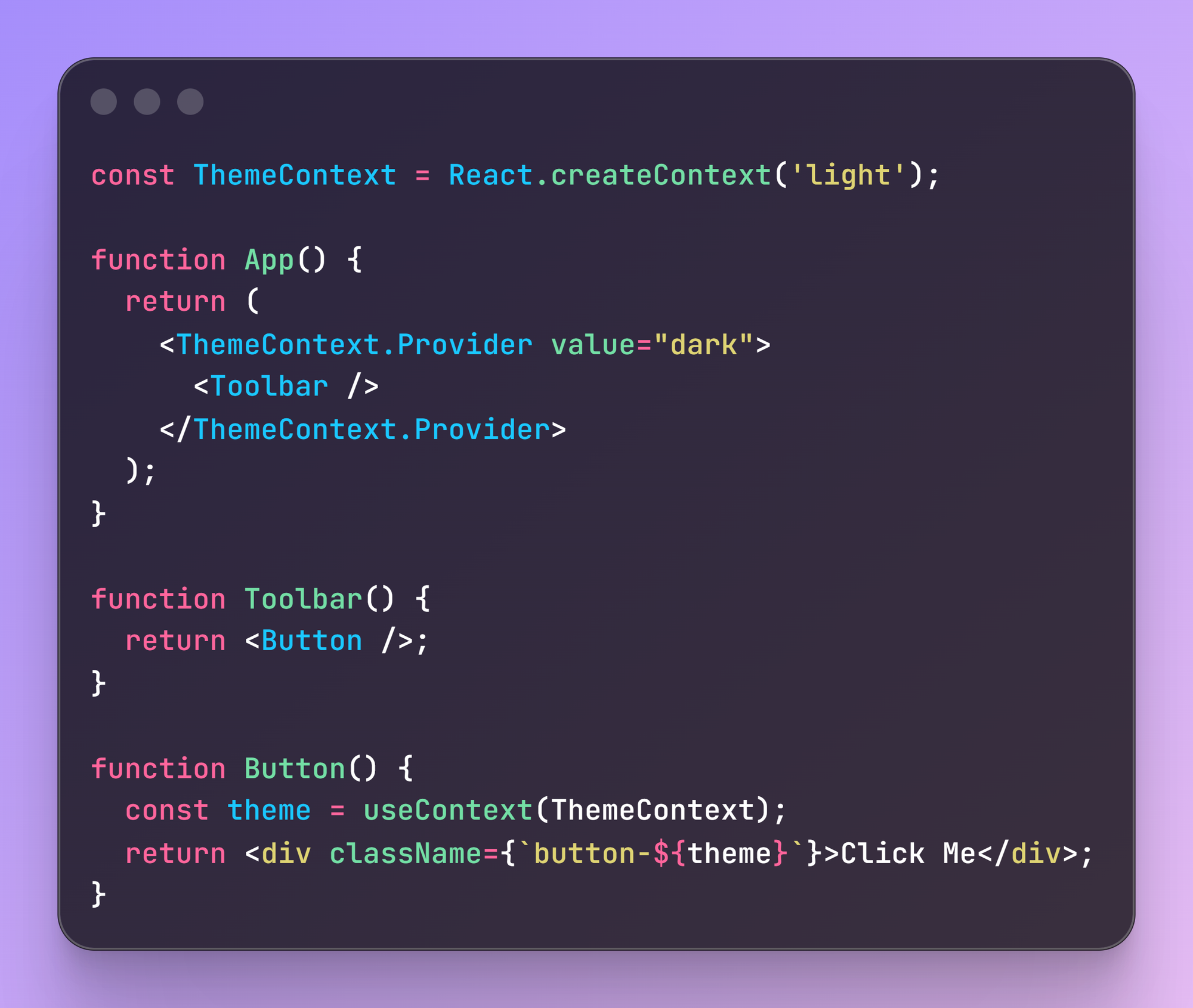 Mục đích ban đầu của Context là giải quyết vấn đề Dependency Injection. Mục tiêu của nó là cho phép các component con cháu sâu trong cây component có thể dễ dàng lấy dữ liệu từ component ở cấp cao nhất, từ đó tránh được việc truyền thuộc tính qua từng cấp (prop drilling).