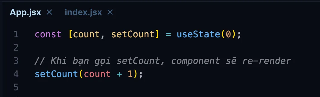Khi bạn gọi hàm thay đổi giá trị count, component chứa nó sẽ bị rerender