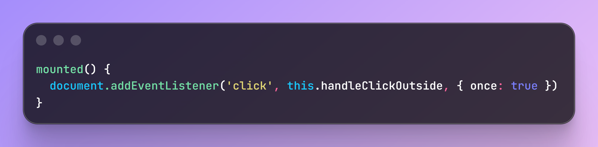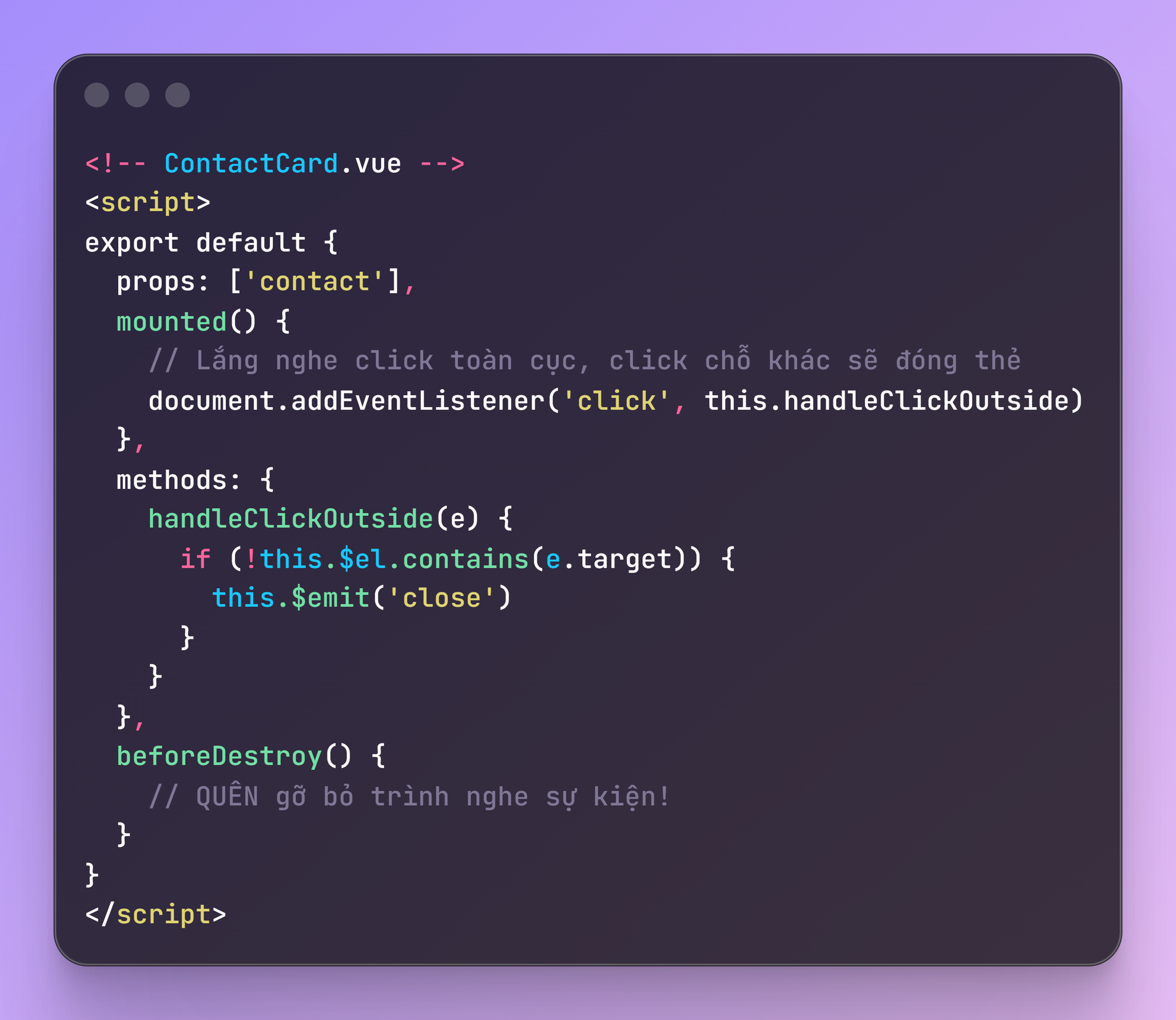 Mỗi lần click trên trang, 50 hàm này đều được thực thi. Tệ hơn - chúng đều giữ tham chiếu đến component đã bị hủy.