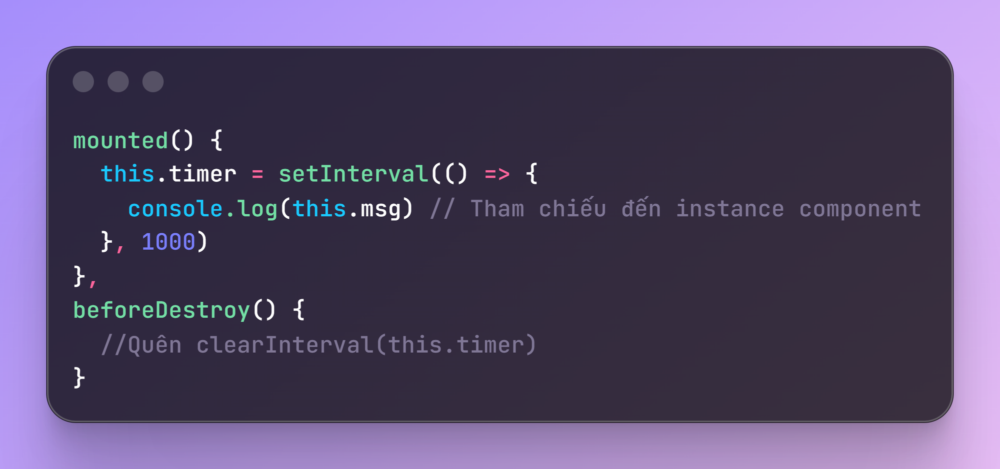 Chuỗi tham chiếu tương tự: window → setInterval → callback → component