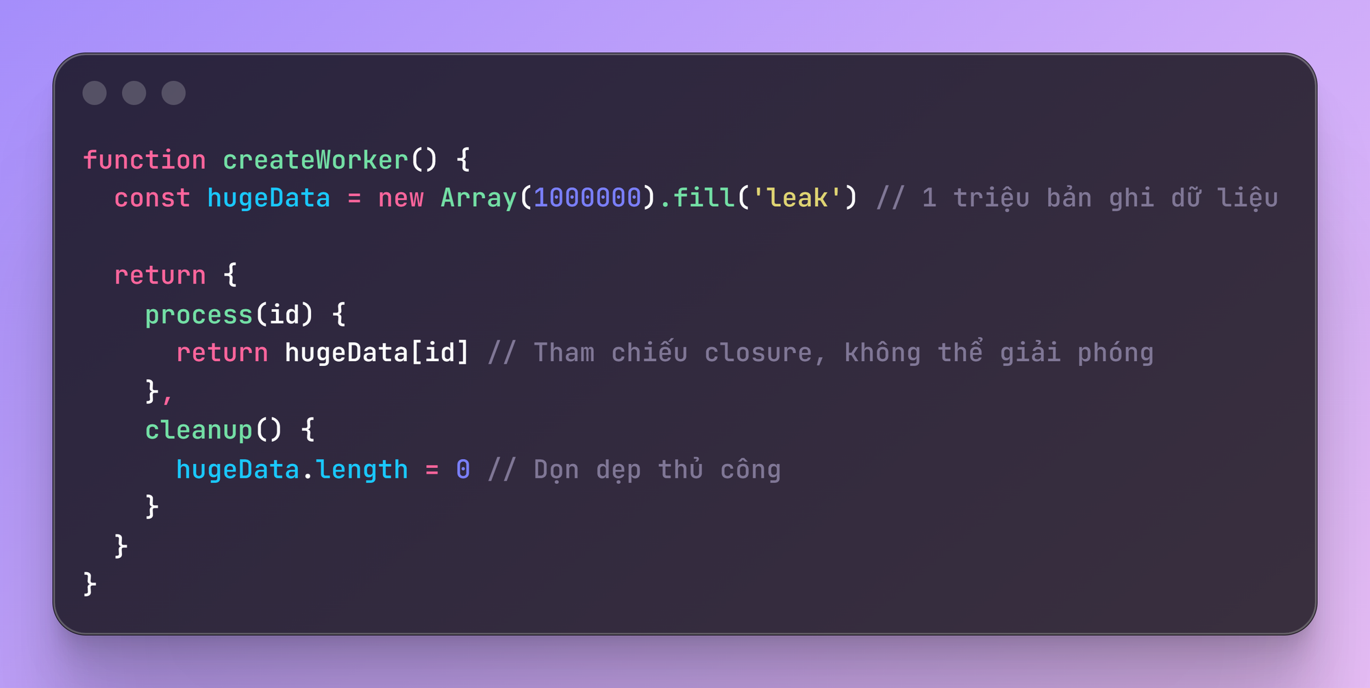 V. Ngoài event listener, còn những nguyên nhân gây rò rỉ bộ nhớ phổ biến nào khác?