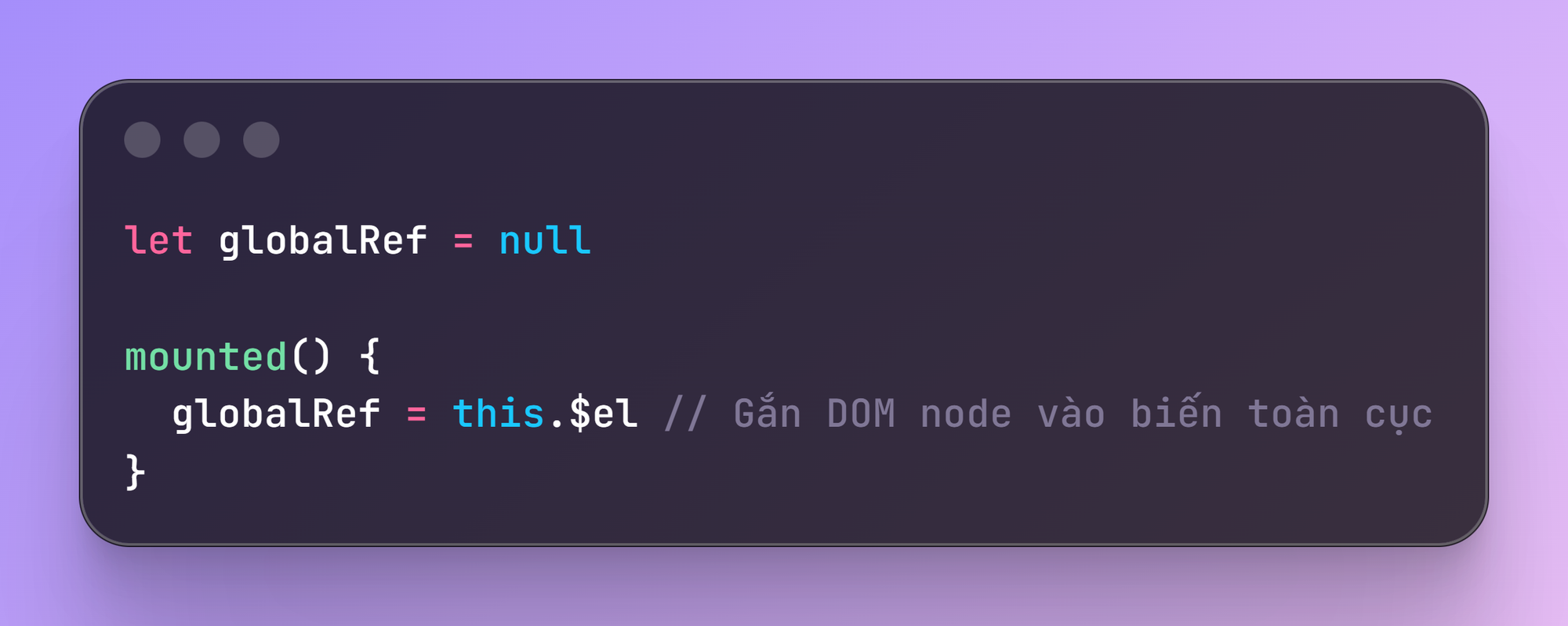 Ngay cả khi component bị hủy, globalRef vẫn trỏ đến DOM cũ, và các sự kiện, thuộc tính liên quan của nó không thể được dọn dẹp.
