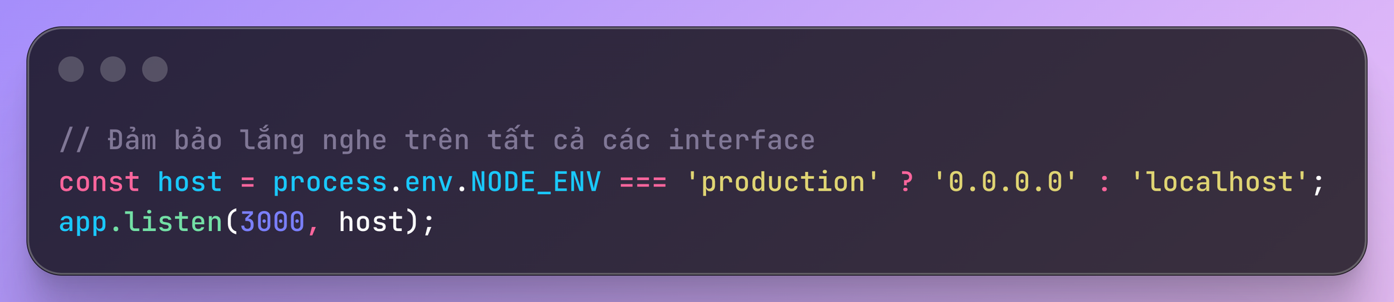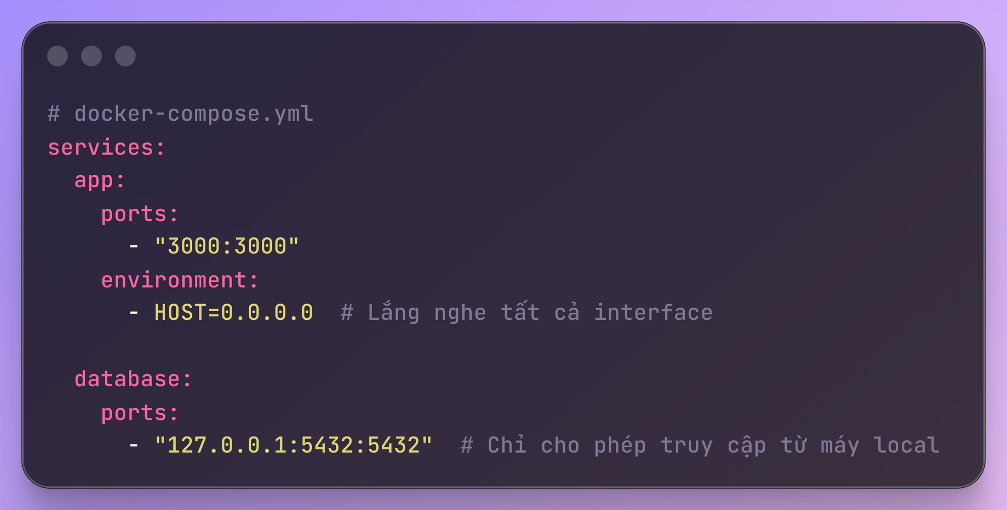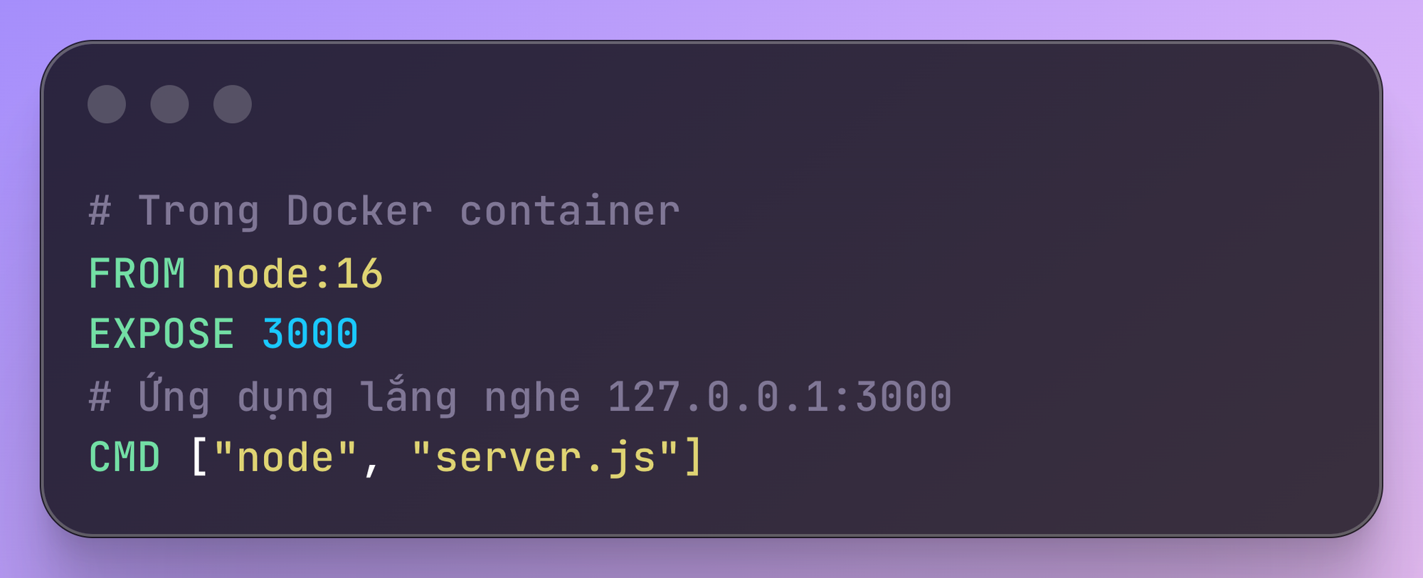 127.0.0.1:3000có thể truy cập được - Bên ngoài container không thể truy cập, vì không bind đến