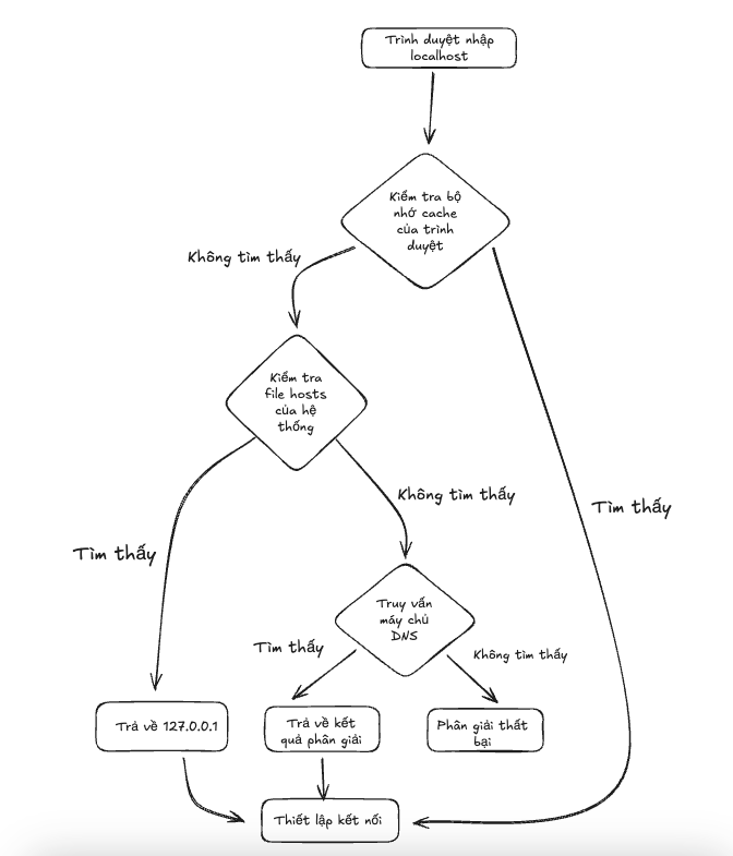- Quá trình phân giải: 127.0.0.1 bỏ qua DNS, localhost cần phân giải