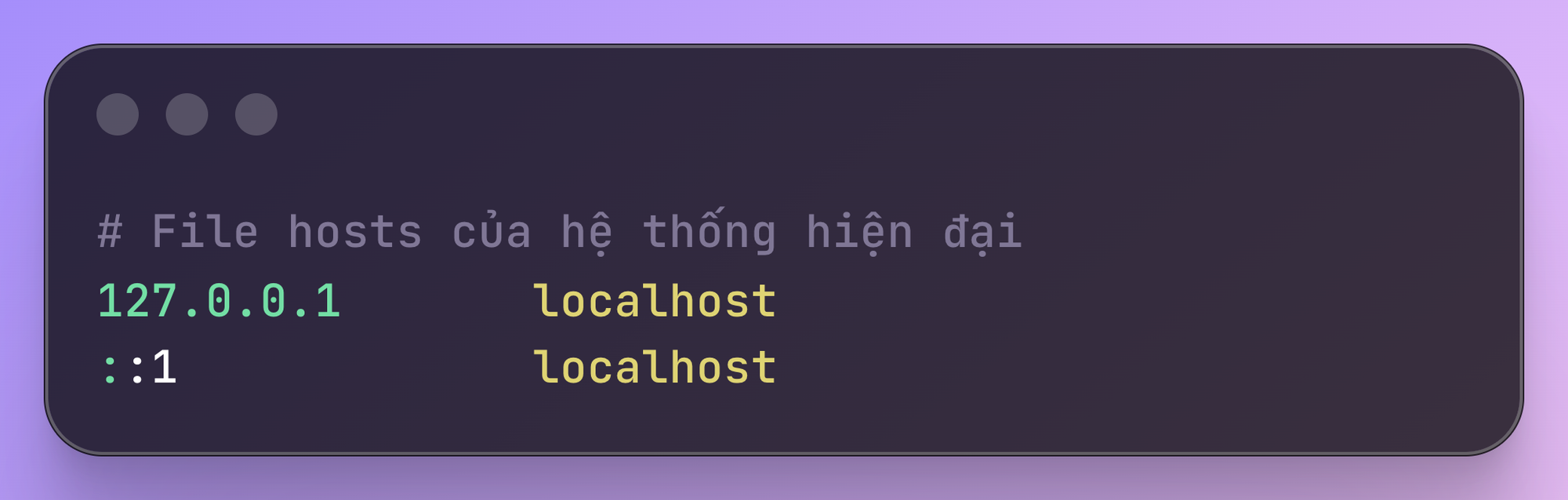 localhost - Các hệ thống hiện đại đều được cấu hình trước ánh xạ này trong file hosts