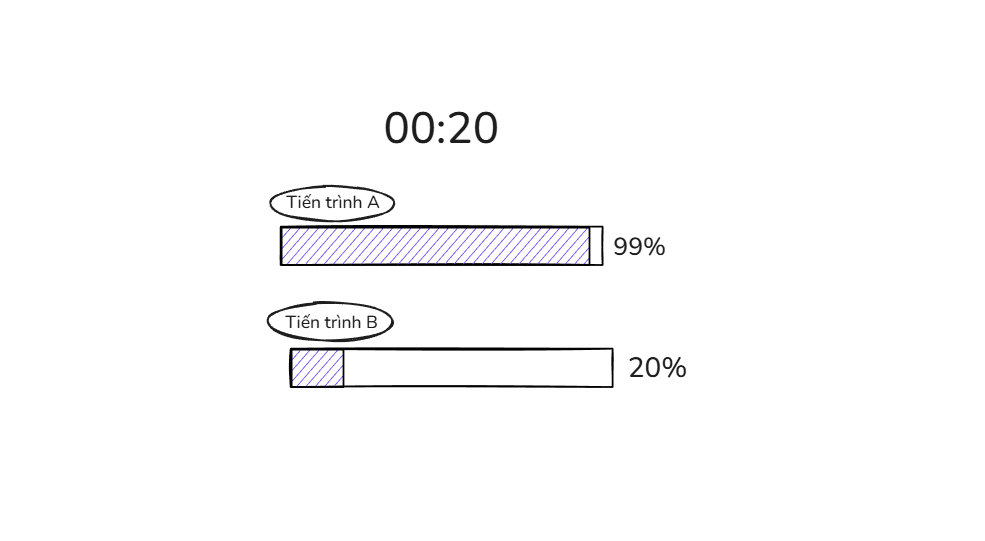 Ví dụ, có hai chương trình tải xuống, cả hai đều mất 100 giây để hoàn tất. Tiến trình A hiện thị 99% trong 10 giây, với 1% cuối cùng mất 90 giây. Tiến trình B chạy đều đặn với tốc độ không đổi, mỗi giây đều chạy 1%. Bạn nghĩ chương trình nào nhanh hơn? Tất nhiên là A rồi.