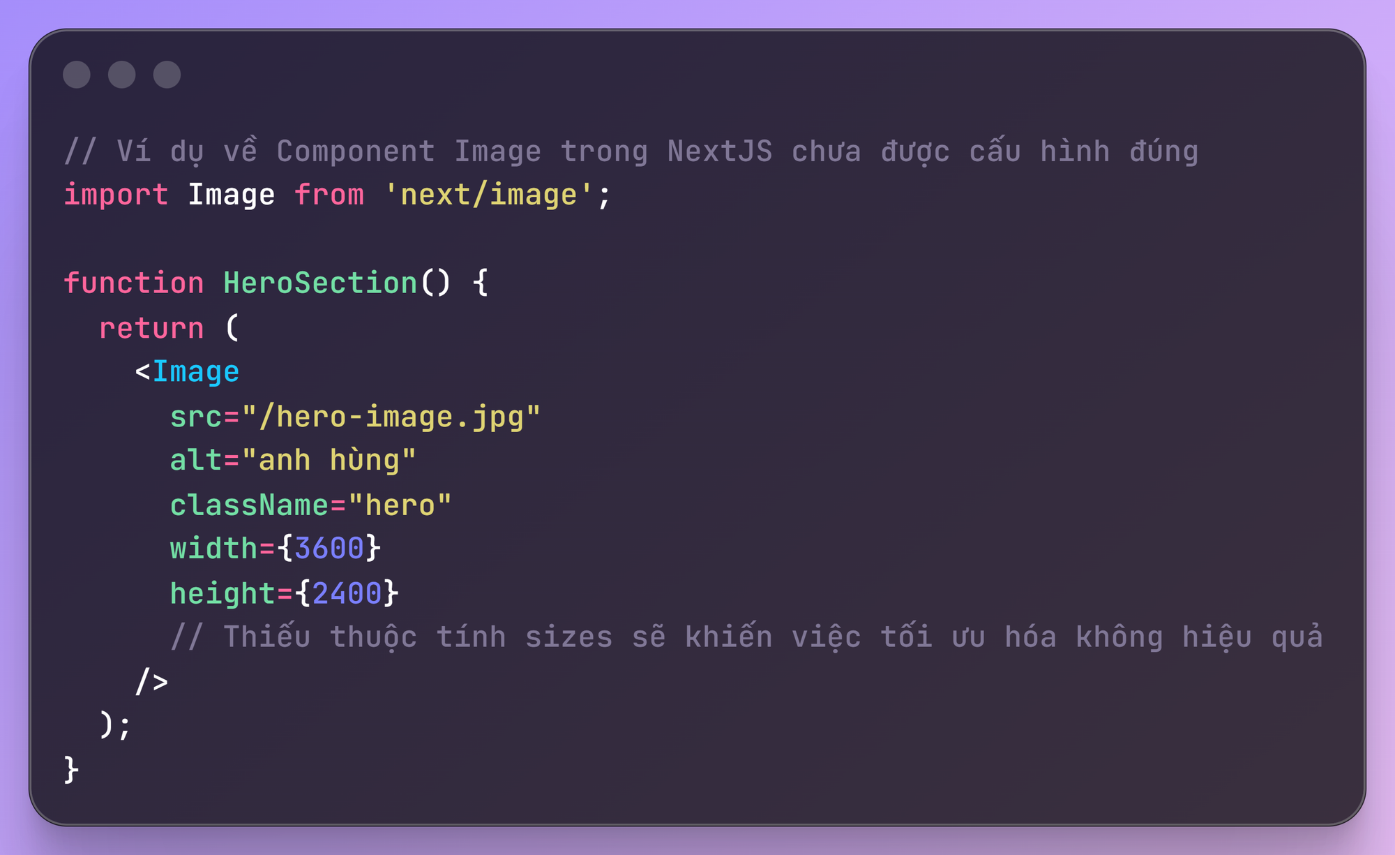 Nhiều lập trình viên nghĩ rằng framework sẽ tự động xử lý mọi chi tiết tối ưu hóa, nhưng thực tế cần phải chỉ định rõ quy tắc hiển thị của ảnh. Việc thiếu sizes sẽ dẫn đến không thể chọn được phiên bản ảnh tối ưu dựa trên độ rộng viewport.